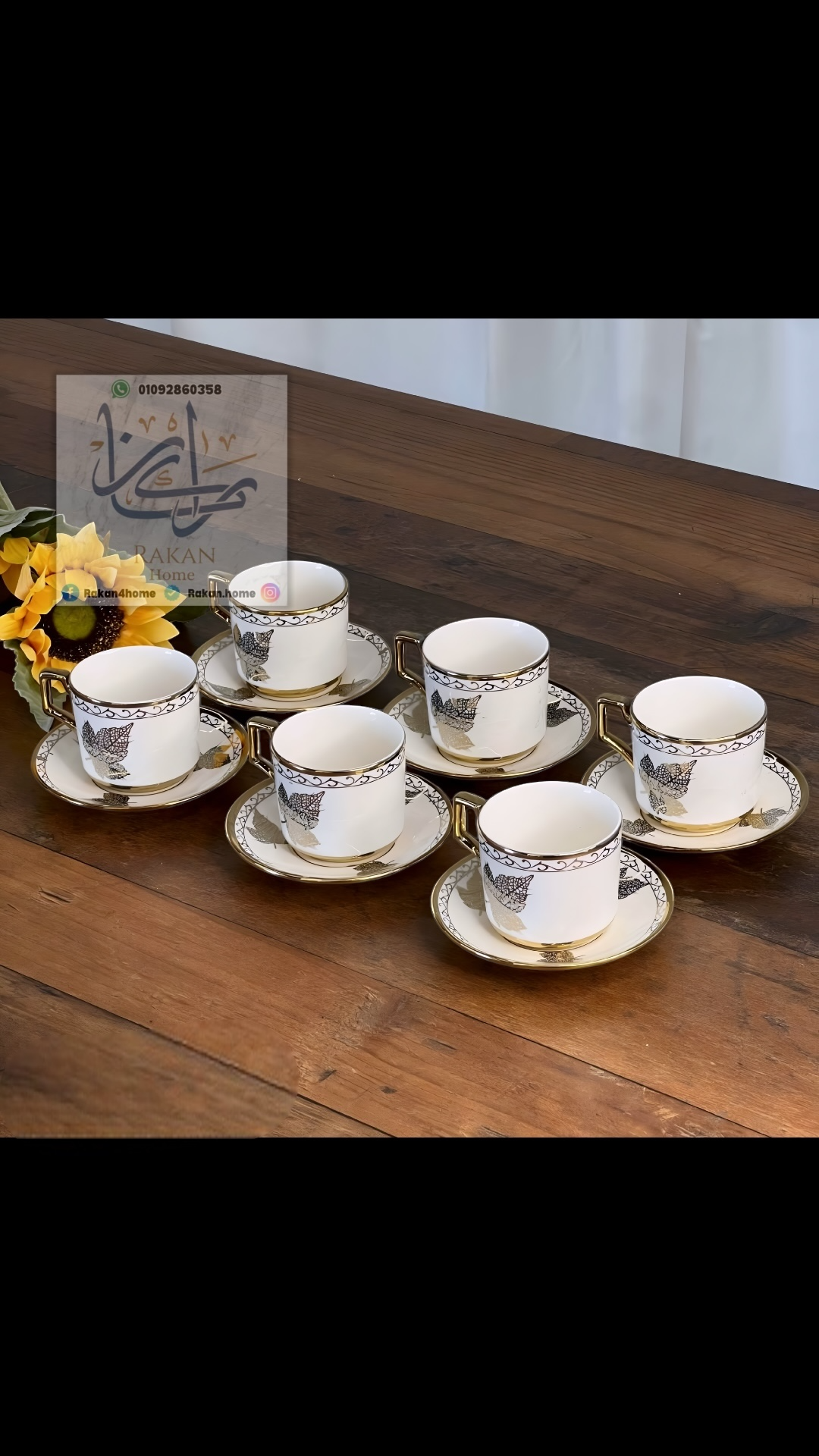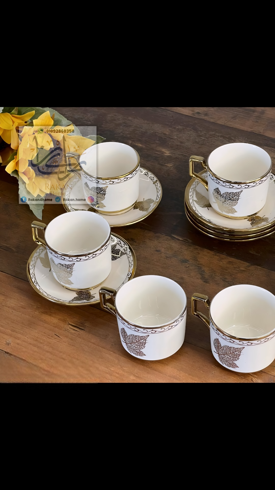 فناجين قهوة تركية مكون من ٦ اطباق و ٦ فناجين بنقشة الشجرة و تصميم اخر نقشة ورقة الشجر
